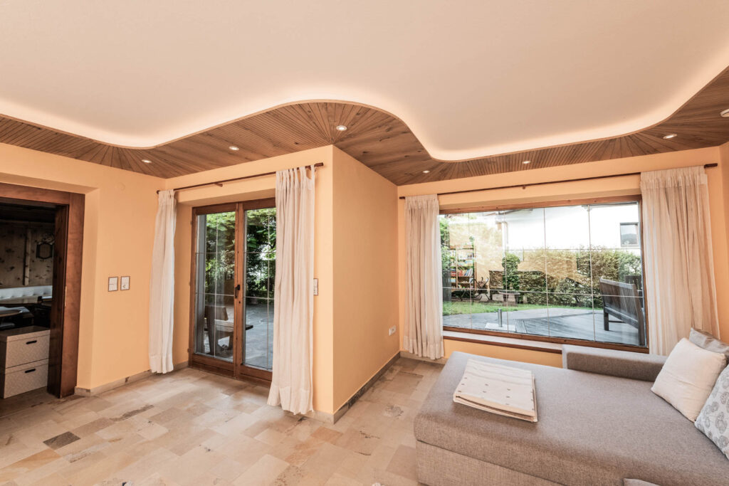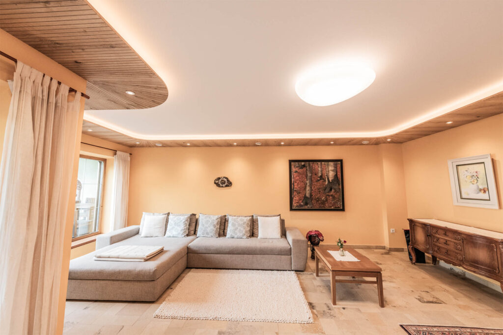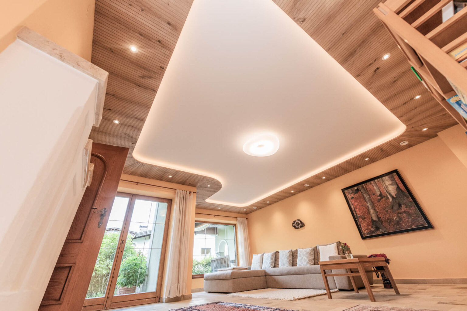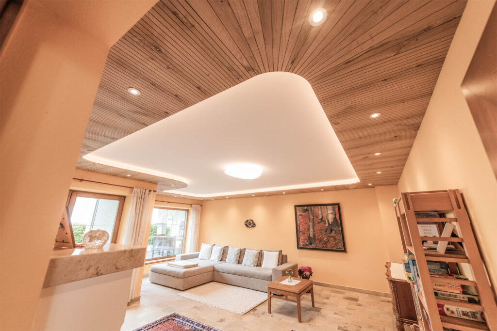 Für dieses Wohnzimmer durften wir eine hochwertige Akustikdecke in